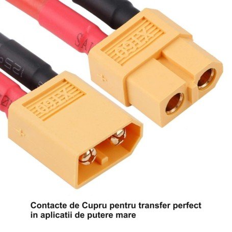 Conectori Mufa XT60 Mama-Tata cu Cablu 20cm este folosit pentru acumulatori (baterii) Liifepo4, li-ion, plumb acid , drone, navomodele, mașini, camioane și mașinării industriale.